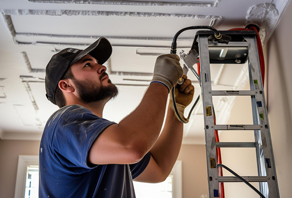 Projects Our Work Speaks for ItselfEvery job reflects our commitment to safety, quality, and precision. Residential EV Station InstallLevel 2 EV charging station installation with dedicated smart monitoring capabilities. 240V dedicated circuit Tesla Wall Connector WiFi monitoring Residential Complete Home RewiringFull electrical system upgrade including new panel, updated wiring throughout the house. 200-amp electrical panel GFCI outlets throughout LED recessed lighting Commercial Office LED UpgradeComplete LED lighting retrofit for 3-story office building, reducing energy consumption by 60%. Energy-efficient LED fixtures Occupancy sensors Dimming controls Emergency Emergency Panel RepairEmergency electrical panel replacement after storm damage, restoring power safely and quickly. Same-day service Code compliant panel Safety inspection Residential Smart Home IntegrationComprehensive smart home electrical setup with automated lighting, security, and energy management. Smart switches & dimmers Automated lighting scenes Energy monitoring Commercial Kitchen ElectricalCommercial kitchen electrical installation with high-capacity circuits for professional equipment. 240V commercial circuits Emergency lighting Code compliant installation Ready to get started? Get Your Free Electrical Quote TodayContact us for a free consultation and quote. We’re here to help with all your electrical needs. Get My Free Quote